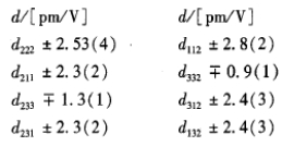 倍頻(pín)(1064nm/532nm) | 匹配角: 168.9°from Z axis in YZ plan Deff : 3.0 +/- 0.1 pm/V 接收角: 2.32 mrad·cm 離(lí)散角 : 25.6 mrad 接收溫度: 2.17 ℃·cm |